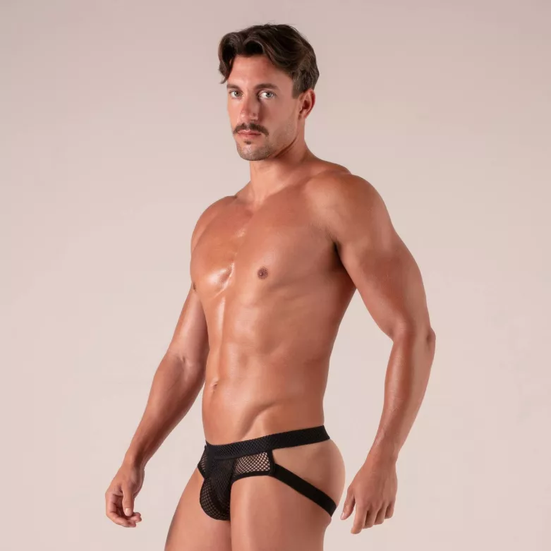Unleash your seductive power with the seduction jockbrief - a hybrid underwear piece blending the classic brief and the erotic jockstrap. Made from soft, breathable mesh, it reveals your shape while providing support and comfort. Perfectly fitted, this design showcases the body boldly, with suggestive cutouts and a sculpting structure.